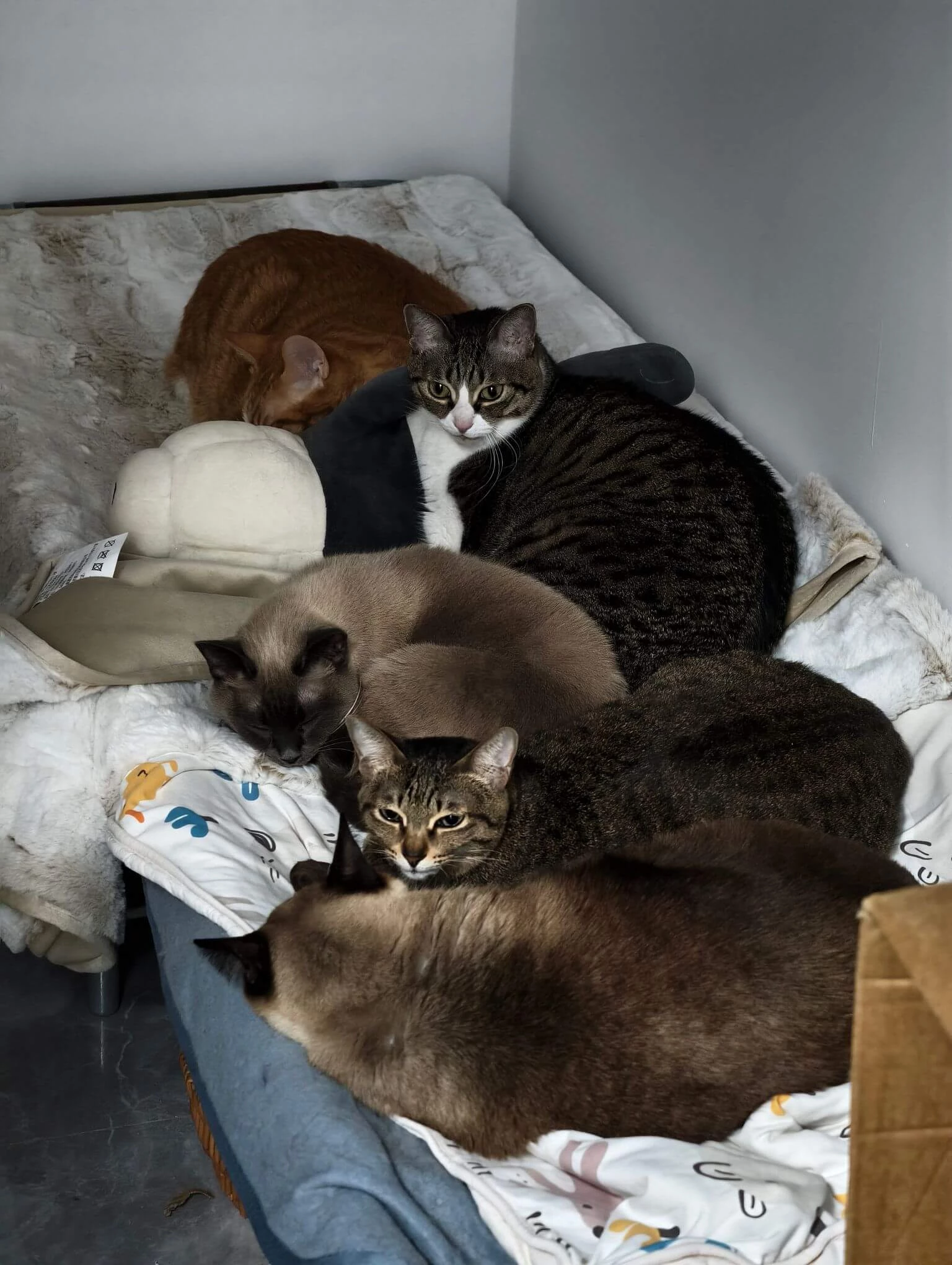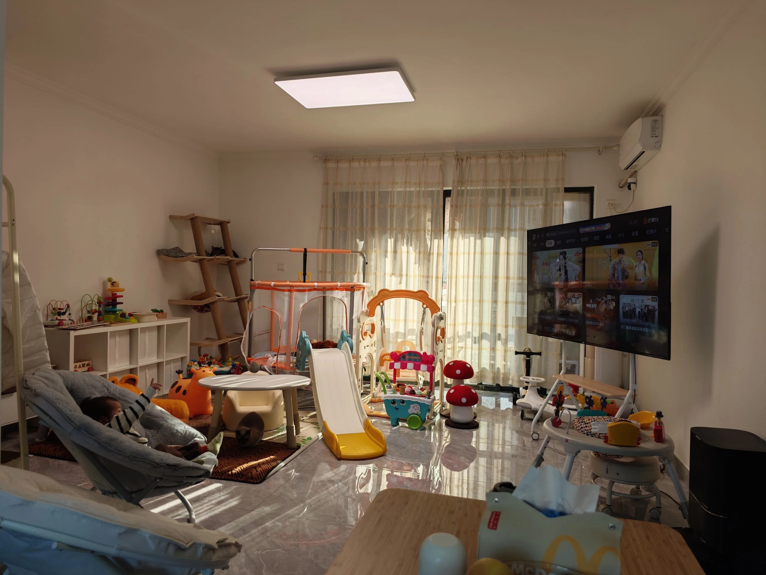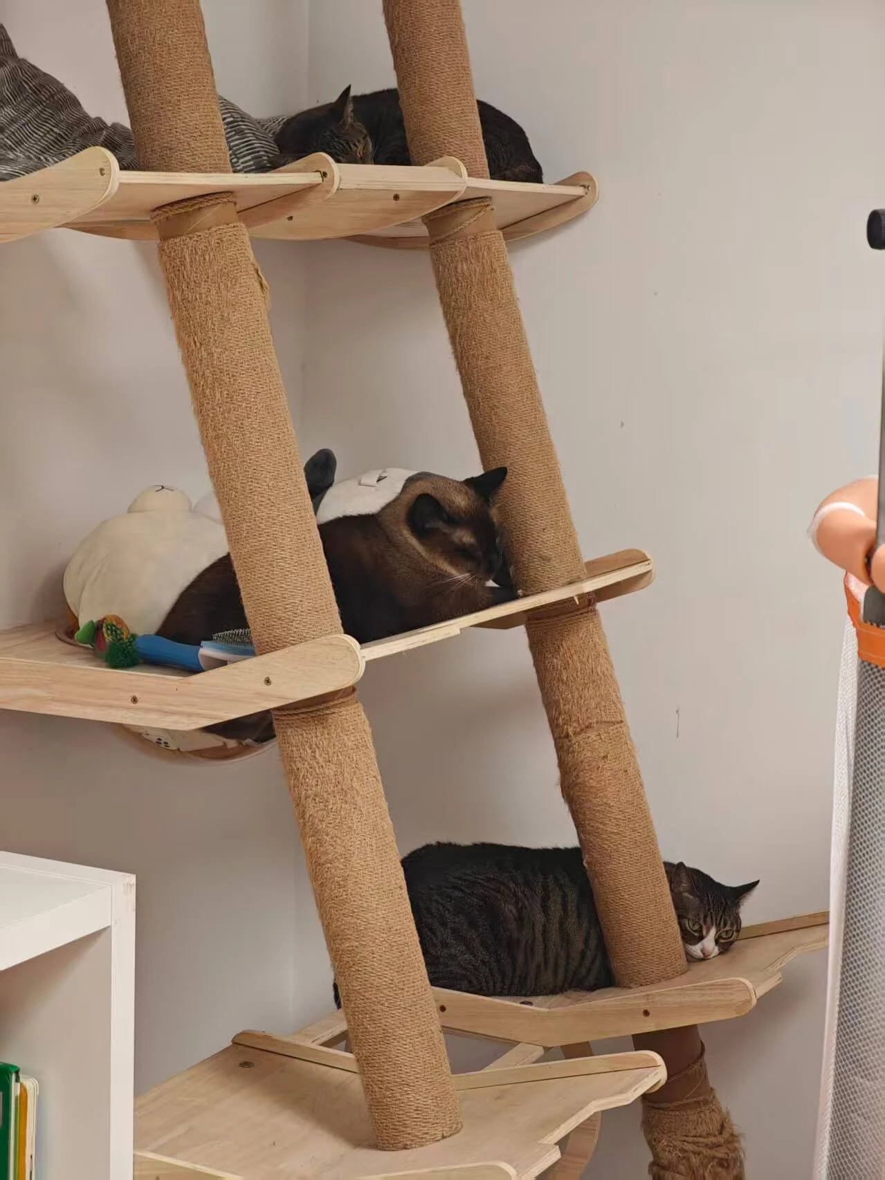 以为花了大价钱,猫主子就会赏脸上这个猫爬架,结果放了一年,最多时候只有三只猫同时在上面,高估了猫猫的友谊们,咖啡还在上面喷射呕吐过,顺着墙流到了地板😭