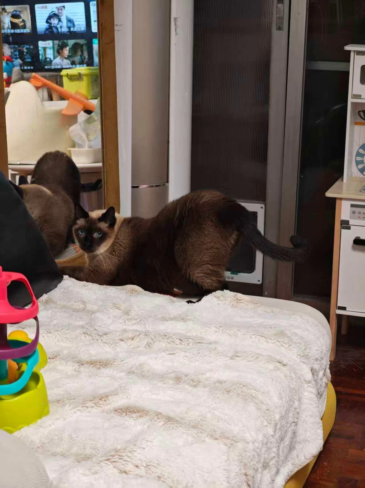 家里明明有猫抓板,甚至纸皮箱都给他们留着,但他们总想抓沙发,为了杜绝他们抓沙发,我铺了一个防猫毛毯,他就在边边给我抓沙发,姿势还特别妖娆,看到我来了也不跑,再抓两把给我看。