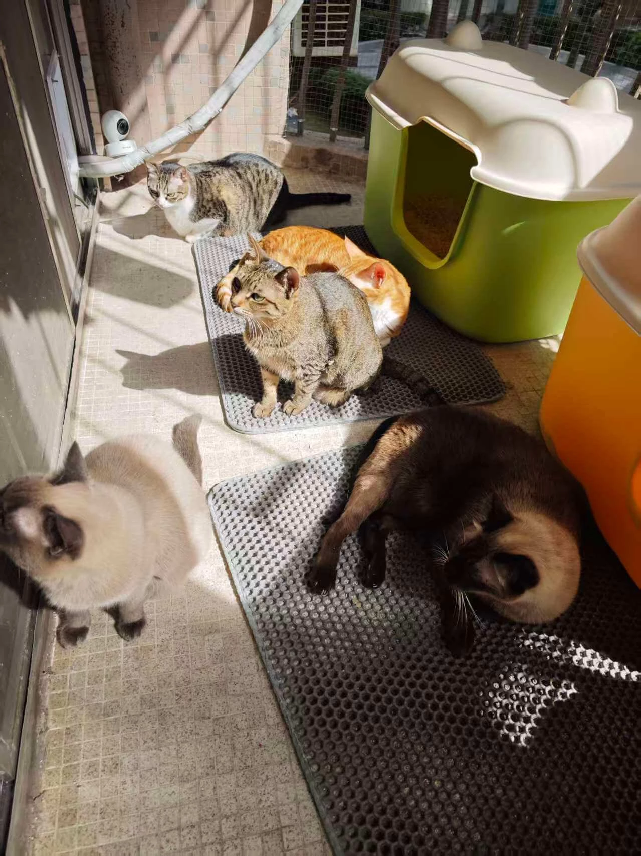 以前的阳台有10平方,现在的阳台只有两平方,委屈猫主子们了,跟着我们受苦受累,连厕所都变小了