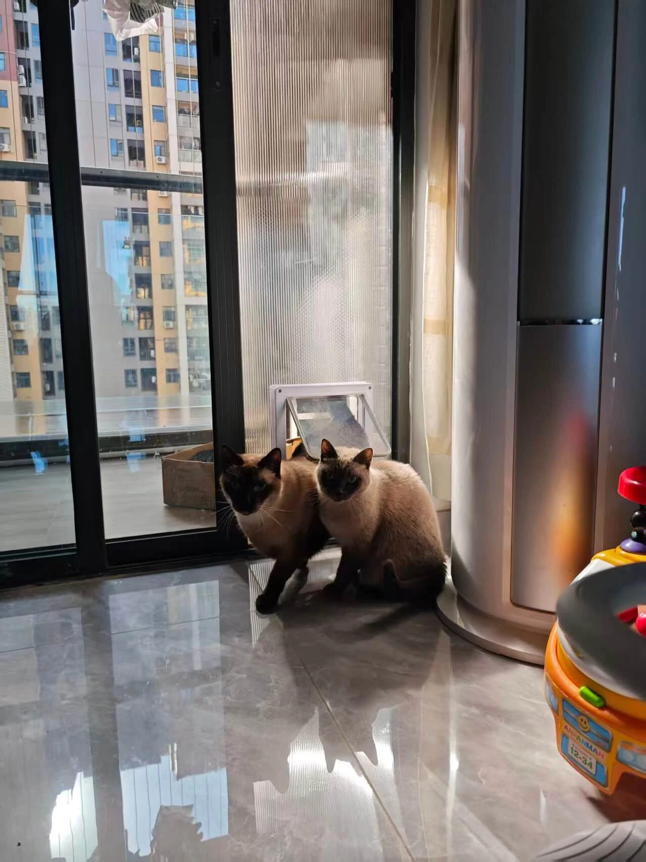 我们两夫妻在网上做攻略,一起给猫搭了一个简易猫门,搬到新家也还在使用,特别好使!冬天可以把阳台门关上了,夏天也可以开空调了😁感动哭了