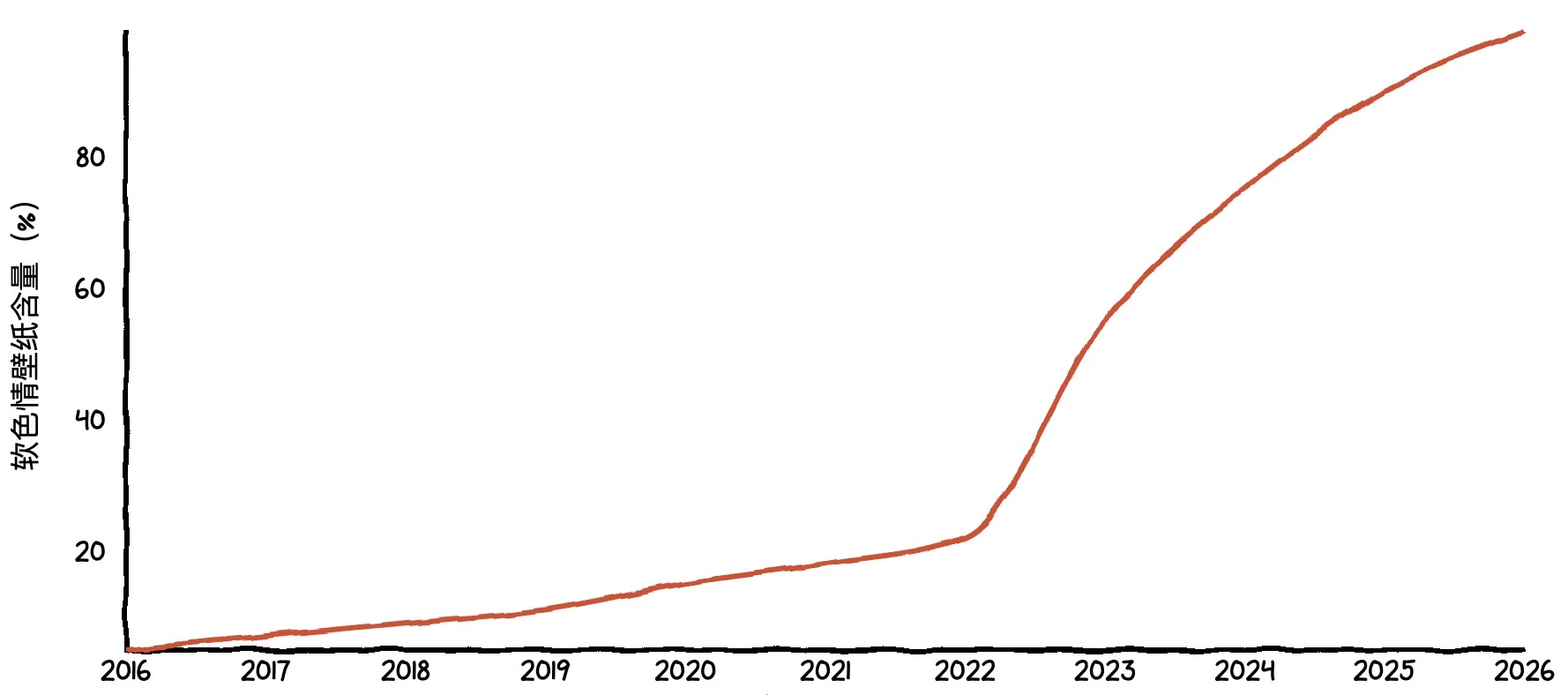 这些年来,我发现我在挑选壁纸的方向上出现了非常明显的倾向。经常追更我壁纸包的朋友都知道(是的,这壁纸包居然有粉丝追更,我是没想到的),我最初分享的壁纸都是些二次元场景、人像等内容,整体上都是很健康的。但在某一个时间节点之后画风突变,二次元软色情内容的含量大幅上升,大概就是这样: